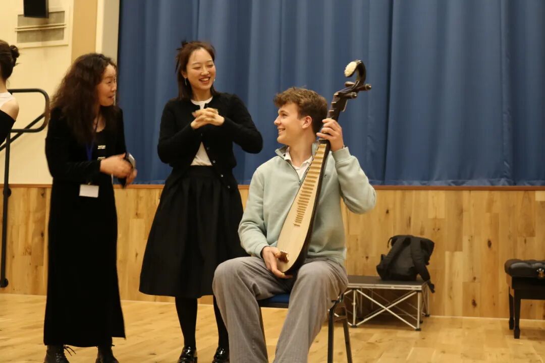 24日晚,在擁有悠久歷史的英國切特姆音樂學校恩格斯廳,上演了一場別具一格的文化互動。笙、二胡、笛子、琵琶等中國傳統樂器輪番亮相,清脆悅耳的旋律引來現場英國中學生陣陣掌聲,不少學生還走上臺前,近距離接觸中國傳統樂器。